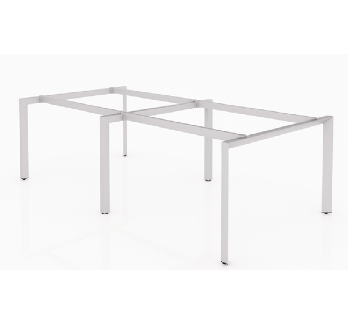 Mặt bàn chữ nhật nối liền xuống dưới là thanh xương sắt nâng đỡ mặt bàn được bắt với chân sắt tam giác.